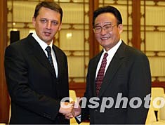 全國人大常委會委員長吳邦國十二月四日在北京會見斯洛文尼亞共和國總理安東·羅普。中新社記者:鄭萍萍