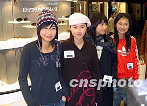 香港流行音樂組合Cookies為品牌眼鏡宣傳。一個品牌眼鏡5日展示2004年春夏眼鏡系列,香港流行音樂組合Cookies 出席記者會為其宣傳。中新社記者:譚達明