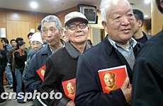 一代偉人毛澤東誕辰110周年前夕,百余名購買了紀念毛澤東書籍的北京市民在王府井圖書大樓排成長隊,靜靜地等候毛澤東之孫毛新宇的簽名,以寄托對毛澤東的深情懷念。中新社記者:史利