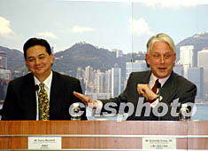 香港刑事檢控專員江樂士[右]資深大律師,12月15日在記者會上公布,就前財政司長梁錦松在二○○三年度財政預算案增加首次登記稅前買車一事,決定不向他作出檢控。作者:洪少葵