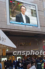 十二月十五日,香港刑事檢控專員江樂士決定,就前財政司司長梁錦松在二零零三年度財政預算案增加首次登記稅前買車一事,不向他作出檢控。圖為香港街頭電視轉播梁錦松案件經過。作者:潘索菲