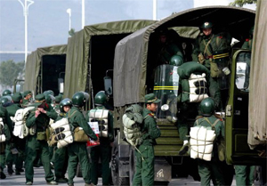 圖:武警開赴“12·2 3”井噴事故搶險救災現場