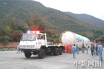 圖:“長征二號丙”改進型運載火箭轉運途中