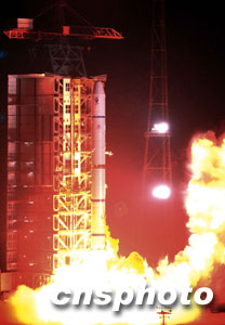 一連串短促清脆的指令發(fā)出后,金牌火箭“長(zhǎng)征二號(hào)丙”改進(jìn)型運(yùn)載火箭噴射出桔紅色的熊熊烈焰,在驚天動(dòng)地的呼嘯聲中沖天而起,托舉著“探測(cè)一號(hào)”衛(wèi)星向九霄云外飛去。火箭越飛越高、越飛越遠(yuǎn),只一霎那功夫,就從人們的視線中消失了。