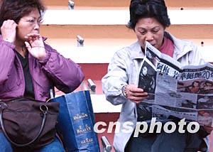 香港百變天后梅艷芳因病于十二月三十日零晨?jī)牲c(diǎn)五十分在香港逝世。圖為香港市民清晨閱讀有關(guān)梅艷芳病逝消息。中新社記者:錢興強(qiáng)