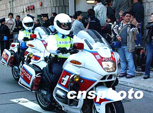 香港藝人梅艷芳因病于十二月三十日凌晨二時五十分在香港病逝,在香港養和醫院前大批警察維持秩序。中新社記者:錢興強