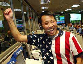 在簡短的談話中,艾拉契贊揚(yáng)該實(shí)驗(yàn)室這次負(fù)責(zé)指揮“勇氣號”著陸系統(tǒng)的華裔工程師李煒鈞,認(rèn)為他的專業(yè)表現(xiàn)殊堪嘉許。據(jù)了解,李煒鈞3日晚在指揮室率先舉手歡呼的鏡頭,第二天登載于許多美國報(bào)紙的頭版。