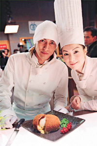 由于兩人都要在電影中下廚,故導(dǎo)演特別安排二人到酒店廚房跟大廚學(xué)藝。對于鄭秀文而言,下廚一點(diǎn)都難不倒她,因?yàn)樗饺斩枷矚g在家中下廚,煮一餐豐富晚餐給家人享用,在跟大廚學(xué)習(xí)時,鄭秀文拿起鍋鏟駕輕就熟。
