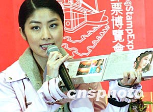 香港歌星陳慧琳元月十五日出席在香港郵政總局舉行的“香港2004郵票博覽會”揭幕儀式。作者:錢興強