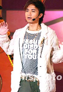 2004年度國際華裔小姐競選決賽一月十七日晚在香港舉行,表演嘉賓古巨基在華裔小姐競選上演唱。 作者:錢興強