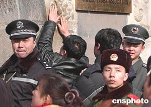 北京最有地方特色的白云觀廟會(huì)正式開幕。數(shù)以萬計(jì)的北京市民涌向白云觀,爭先恐后地觸摸石猴浮雕。因?yàn)槭呛锬晔兹眨懊铩钡氖忻裉貏e多,武裝警察、公安民警和保安員共同在現(xiàn)場維持秩序,保障游客安全。中新社記者:張煒