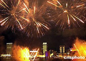 除煙花匯演外,香港新界工商業總會還在會展中心舉行新春酒會,行政長官董建華、中央政府駐港聯絡辦副主任周俊明、外交部駐港特派員楊文昌等出席今晚的活動。