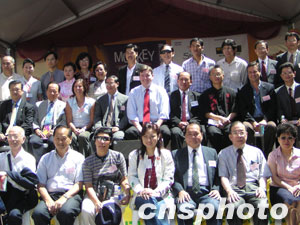 中國駐悉尼總領事廖志洪(2排左4)與新南威爾士州總理卜卡的代表曾筱龍上議員(2排右3)、新州反對黨領袖布洛登(2排中)以及華人社團領袖出席新春聯歡會