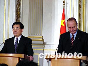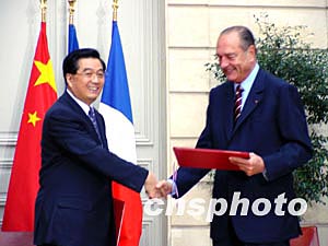 組圖:胡錦濤和希拉克簽署“中法聯(lián)合聲明”