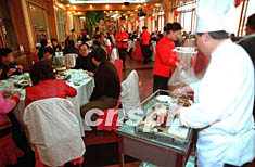 2月3日,北京老字號“全聚德”烤鴨店依然生意興隆。該店的烤鴨原料全部選自北京地區,一直執行嚴格的衛生檢驗標準。作者:張雷