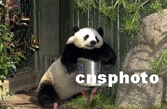 2002年8月21日,作為中美友誼象征的大熊貓華美在美國加州圣地亞哥動物園愉快地度過了它三歲的生日。(中新網資料圖片)