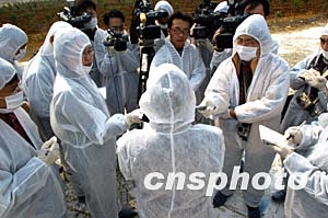中外十四名記者,十二日深入中國內地首發禽流感疫點--隆安縣丁當電灌站采訪。中新社記者:宋吉河