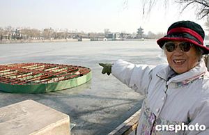 二月十五日,北京什剎海野鴨新家正式開建。為了對野鴨做好進一步的防疫和監控工作,什剎海管理處根據公開向市民征集的設計方案,定制了重達兩噸的玻璃鋼,在冰面上組裝后將建成面積達八十平方米、形狀似一枚巨大鴨蛋的野鴨島浮臺。作者:徐曦弋