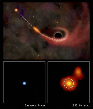 歐洲和美國天文學家18日宣布,他們借助太空望遠鏡在一個距地球7億光年的星系中觀測到了耀眼的X射線爆發。科學家相信,這是被位于該星系中央的黑洞所吞噬的一顆恒星發出的“臨終呼叫”。這是科學家首次找到超大質量黑洞撕裂恒星的強有力的證據。