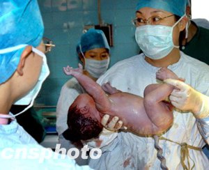 2004年2月24日上午9:30分,伴著一聲清脆的啼哭,一名健康男嬰,在湖北省武漢大學人民醫院順利降生。孕婦全家和醫護人員都激動不已,因為這名嬰兒是全國唯一一例第四代“試管嬰兒”。胡偉鳴 攝