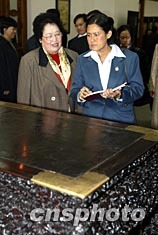 正在北京訪問的泰國詩琳通公主二月二十七日在紫檀博物館館長陳麗華女士的陪同下參觀中國紫檀博物館,感受中國傳統文化的深厚內涵。中新社記者:毛建軍
