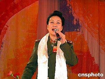 2004年3月9日晚,全國政協(xié)十屆二次會議中共、僑聯(lián)、宗教、民族屆委員與友誼賓館員工舉行聯(lián)歡會。圖為歌唱家彭麗媛在演唱。 孫洪杰 攝