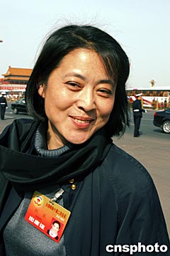 三月十二日,全國政協委員、央視名主播倪萍參加全國政協十屆二次會議閉幕式。作者:慎重