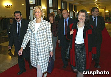 十屆全國人大二次會議三月十四日在北京人民大會堂舉行閉幕式,荷蘭籍戈爾斯女士率領的來自歐盟六個國家的八位歐洲議會成員到會旁聽。作者:慎重