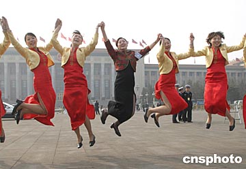 來自新疆的“高空王子”阿迪力表示,他要馬上坐飛機(jī)回去,為民間高空走繩藝術(shù)——“達(dá)瓦孜”籌辦一個(gè)學(xué)校,培養(yǎng)接班人。談及這次盛會,這位人大代表連說了三個(gè)高興——為“私產(chǎn)入憲”而高興;為親民、愛民、護(hù)民的領(lǐng)導(dǎo)集體而高興,為新的奮斗目標(biāo)而高興;接著又連說了三個(gè)好——好班子、好目標(biāo)、好盼頭!