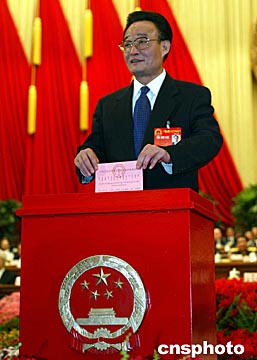 圖:吳邦國投票表決“憲法修正案草案”