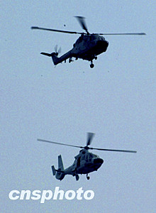 中法直升機在三月十六日的中法聯合軍事演習中進行編隊戰術演練。中新社記者:宋吉河
