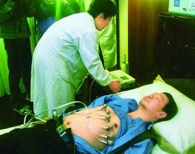 昨日,是“東方超人”陳建民正式挑戰饑餓極限49天的日子。記者(注:成都日報記者)早早來到陳建民挑戰地點碧峰峽景區,而英國天空電視臺、中央電視臺、新華社等國內外媒體也早已全副武裝。剛進碧峰峽,只見專程為陳建民表演而量身定做的16平方米的八角玻璃房已架在四根14米高柱子上,整個玻璃房懸在半空,以便所有人都能仔細看到他在房里的一舉一動。