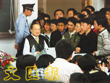 中新網(wǎng)4月8日電 據(jù)香港文匯報(bào)報(bào)道,6日下午3點(diǎn),金庸在浙江大學(xué)講學(xué),與學(xué)生們探討讀書、做人與做學(xué)問的問題。