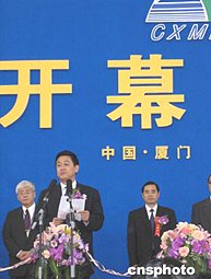 第八屆海峽兩岸機械電子商品交易會暨廈門對臺出口商品交易會(“臺交會”),四月十二日在福建廈門開幕。“臺交會”組委會主任、廈門市長張昌平在開幕典禮上致辭。作者:楊伏山
