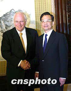 國務院總理溫家寶十四日在北京會見美國副總統切尼。中新社記者:滿會喬