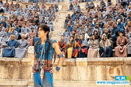 中新網4月22日電 據香港成報報道,九位百事巨星云集安曼古城,各自穿上古裝一字排開,氣勢十足。站在中央的依然是百事老大哥郭富城,天后鄭秀文站在他身旁,F4的少俠打扮各有特色,cool味十足,而周杰倫與蔡依林被陳冠希分隔開。九人的造型都是以藍色為主,周杰倫還扎上長辨,令人甚為新鮮。