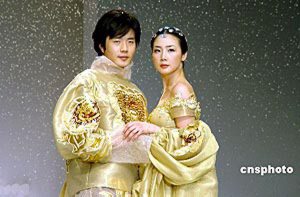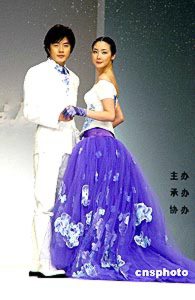 2004年4月22日,韓國服飾設計大師ANDREKIM的服裝發布會在上海舉行。權相宇與崔智友T臺上演藝浪漫愛情。 楊明靜 攝