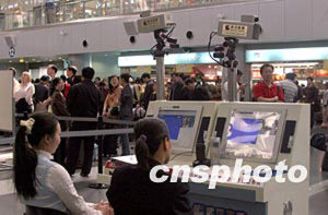 北京四月二十二日確診一例SARS疑似病例后,北京市迅速啟動相應的SARS預警機制。二十三日,北京機場在候機大廳新啟用紅外熱成像自動搜索測溫系統,對所有進出旅客實行嚴格的體溫測試。中新社記者:張勤