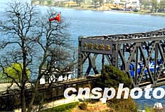 四月二十四日周末假日,陽光照耀著與朝鮮一江之隔的遼寧省丹東市中朝口岸。朝鮮二十二日發生火車爆炸重大事故后,該口岸秩序通行正常。中新社記者:宋吉河