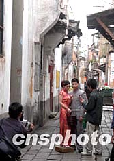 一對身著中式傳統服裝的青年男女在福州老城區“三坊七巷”里拍攝婚紗照。時下,越來越多的福州年輕人熱衷懷舊風格的婚紗照。作者:鄭祚聲