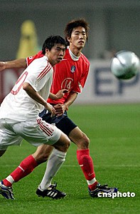 一球在握的韓國(guó)國(guó)奧隊(duì)易邊之后不到三分鐘又有斬獲,十三號(hào)金東進(jìn)的一腳抽射將比分?jǐn)U大至二比0。兩球落后的中國(guó)國(guó)奧隊(duì)在隨后的比賽中全線(xiàn)反擊,高明、胡兆軍等人多次威脅韓國(guó)國(guó)奧隊(duì)的球門(mén),但只開(kāi)花不結(jié)果,0比二的比分一直保持到終場(chǎng)結(jié)束。