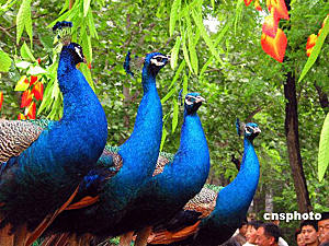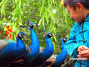 動物大巡游,是山東濟南動物園“五·一”黃金周的主打節(jié)目,豐富的表演形式,眾多的動物種類,讓游客大飽眼福。2004年5月3日,讓人喜愛的藍孔雀站在巡游花車上傲氣十足。希牛 攝