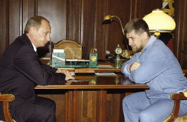 普京(左)在克里姆林宮接見卡德羅夫的兒子