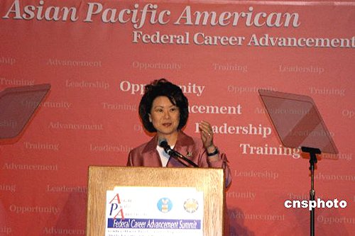 美國勞工部長趙小蘭五月十日在美國勞工部舉辦的亞太裔聯邦雇員職業晉升峰會上演講時承諾,將繼續推動亞太裔雇員在美國聯邦政府的職業晉升機會。作者:余東暉