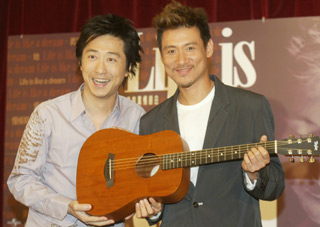 好友哈林也出現(xiàn)在媒體見面會上,還贈與學(xué)友價值不菲的吉他