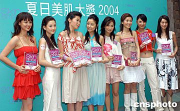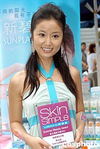 臺灣影星林心如5月13日在香港出席《屈臣氏護膚易夏日美肌大獎2004頒獎禮》,林心如獲頒「完美膚色大獎」。作者:鄧慶樂