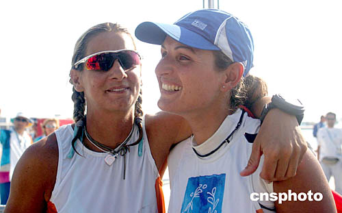 在當地時間舉行的女子470級帆船帆板比賽中,希臘選手BEKATOROU SOFIA和SOULFA AIMILIA榮獲冠軍。