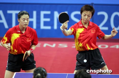因為規則限制,中國選手只能有一組進入決賽,這也使得在決賽中王楠/張怡寧這對組合必須要擊敗對手。決賽中,王楠和張怡寧在第一局與對手展開激烈爭奪,并以十一比九拿下這關鍵一局。此后她們發揮越來越好,也非常興奮,連續以十一比七和十一比六拿下第二和第三局,以總比分三比零領先。