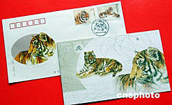 北京市郵票公司為配合國家郵政局于八月二十三日發行《華南虎》特種郵票(一套二枚),特設計印制了《華南虎》特種郵票的首日封、郵折、等郵品,將于八月二十三日與郵票同日發行。這兩枚郵票的名稱均為華南虎,面值分別為八十分與二元。華南虎屬極度瀕危動物,其野生種群不足為三十只,在中國動物園內也只有五十只,與大熊貓同被列入國際自然與自然保護聯盟(IUCN)十大瀕危物種之列。中新社記者:鄒憲