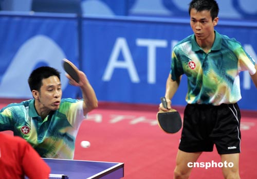 中新社雅典八月二十一日電 (記者 宋方燦)中國乒乓球男子雙打組合馬琳/陳玘今天奪取奧運(yùn)會的雙打冠軍,這也是中國乒乓球隊(duì)在本屆比賽中奪取的第二枚奧運(yùn)金牌。中國香港選手高禮澤和李靜獲得一枚銀牌。六局的比分為十一比六,十一比九,七比十一,十一比八,八比十一和十一比五。